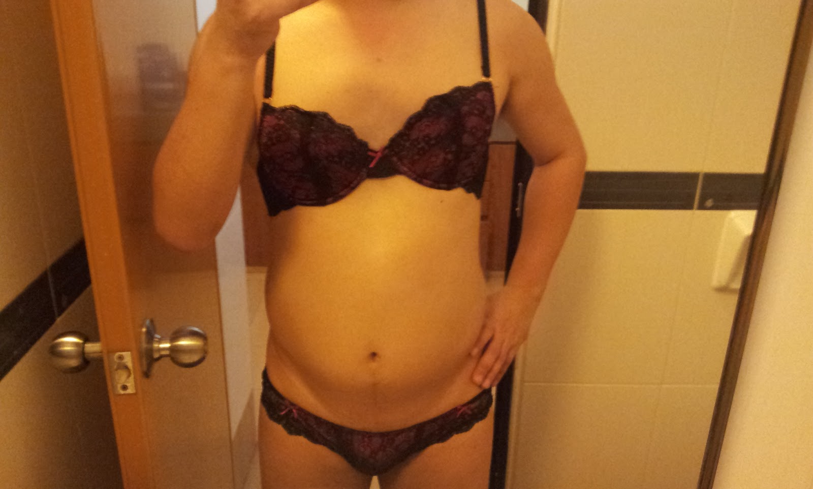 I bought some pre-loved lingerie from UK recently. This set has nice black lace over purple satin. Bra size is 36B.